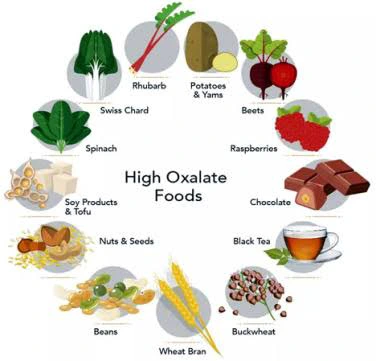 Peanuts, rhubarb, spinach, beets, sesame seeds, chocolate, and sweet potatoes are among the foods high in oxalate.