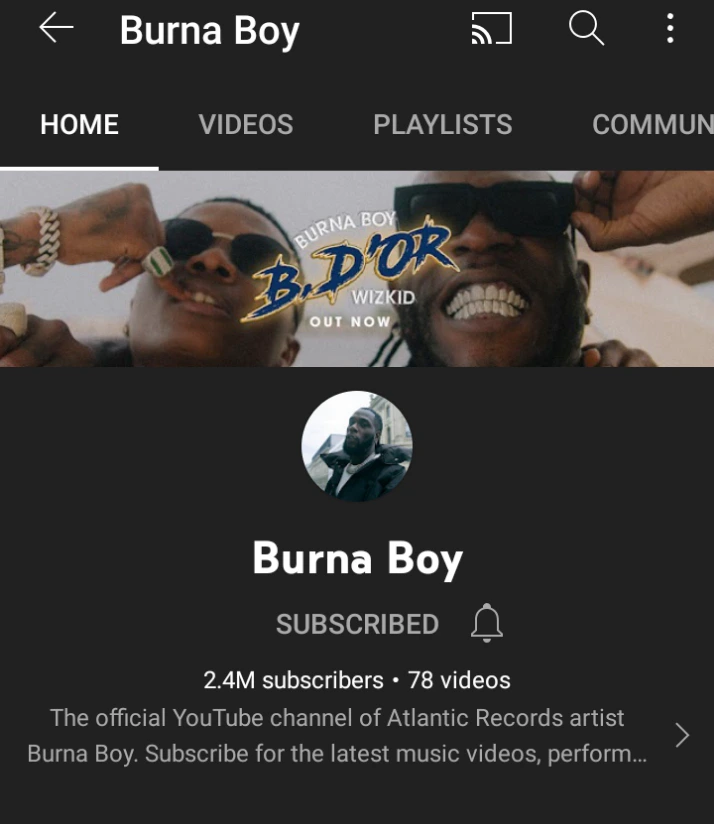 Burna Boy is another Nigerian artist who made the list of most subscribed Nigerian Artiste on YouTube of all time.