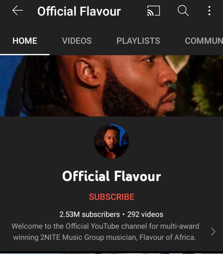 With 2.91 million subscribers on YouTube, he is the most subscribed Nigerian Artiste on YouTube.